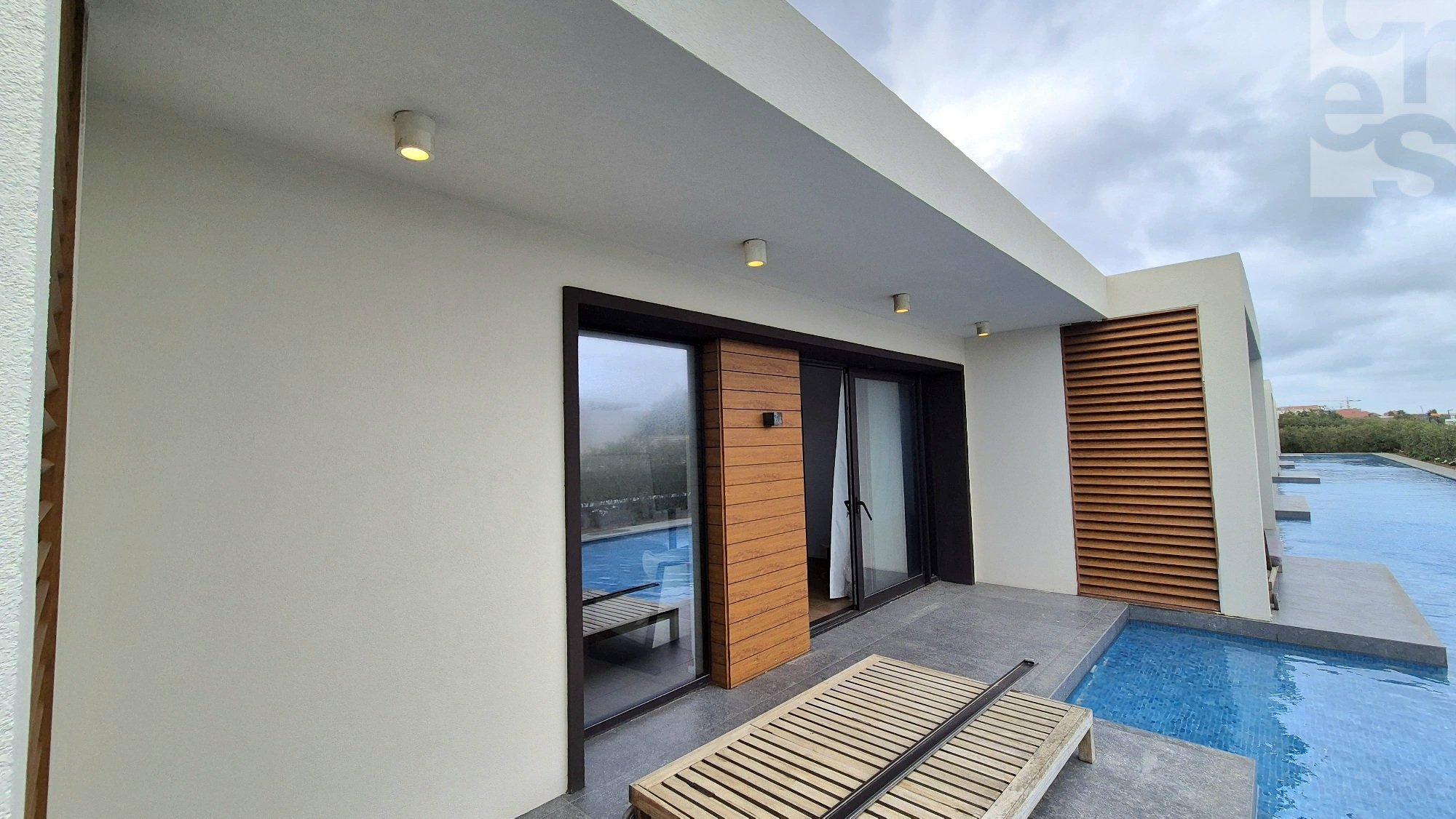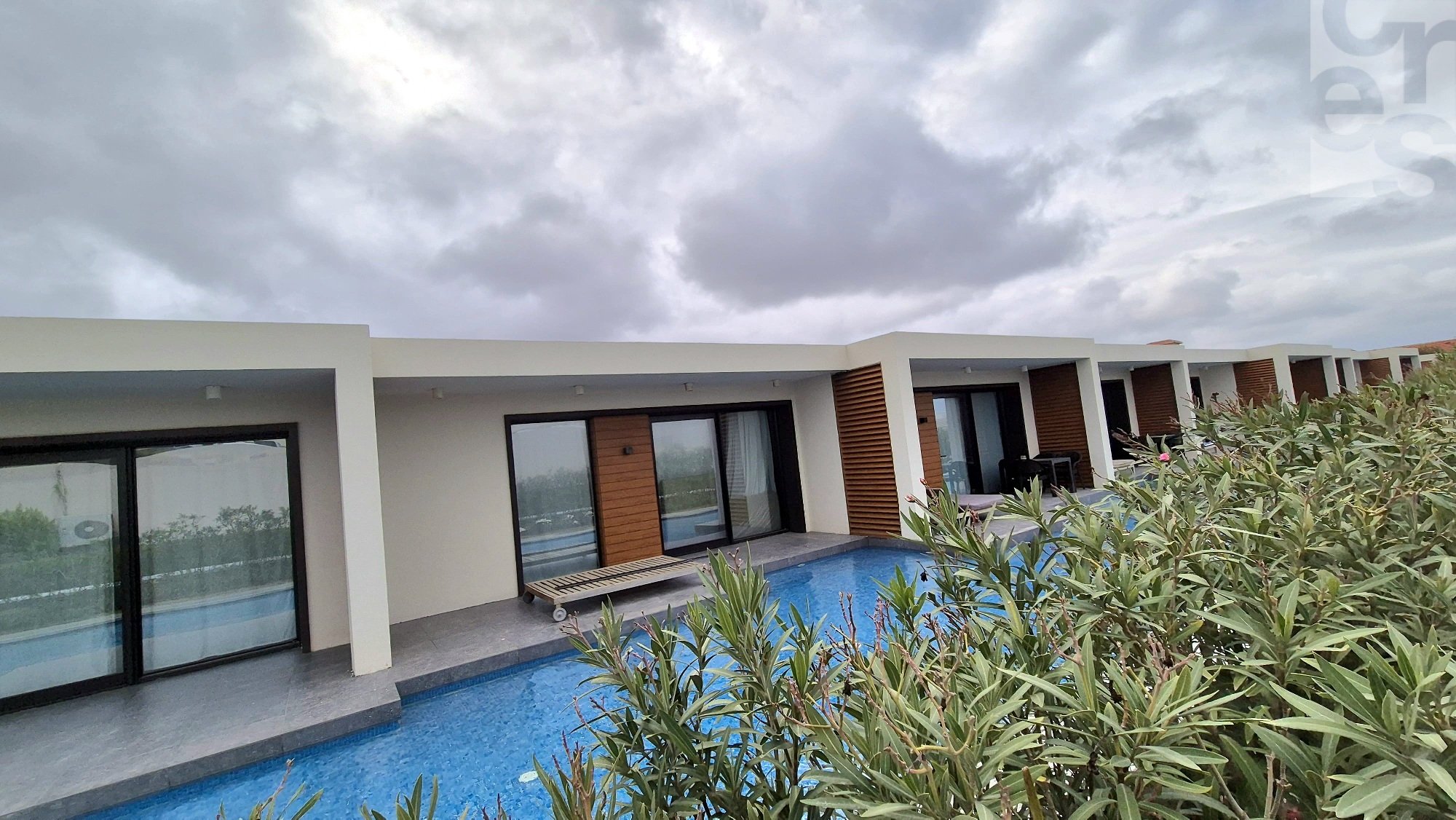 Одноэтажные виллы спроектированы в стиле хай-тек, который как нельзя лучше подчёркивает сдержанную роскошь современной архитектуры. К каждой вилле примыкает свой дворик с мини-террасой, бархатным газоном или декоративным бассейном. Живые изгороди из туй обеспечивают ощущение приватности и спокойствия.