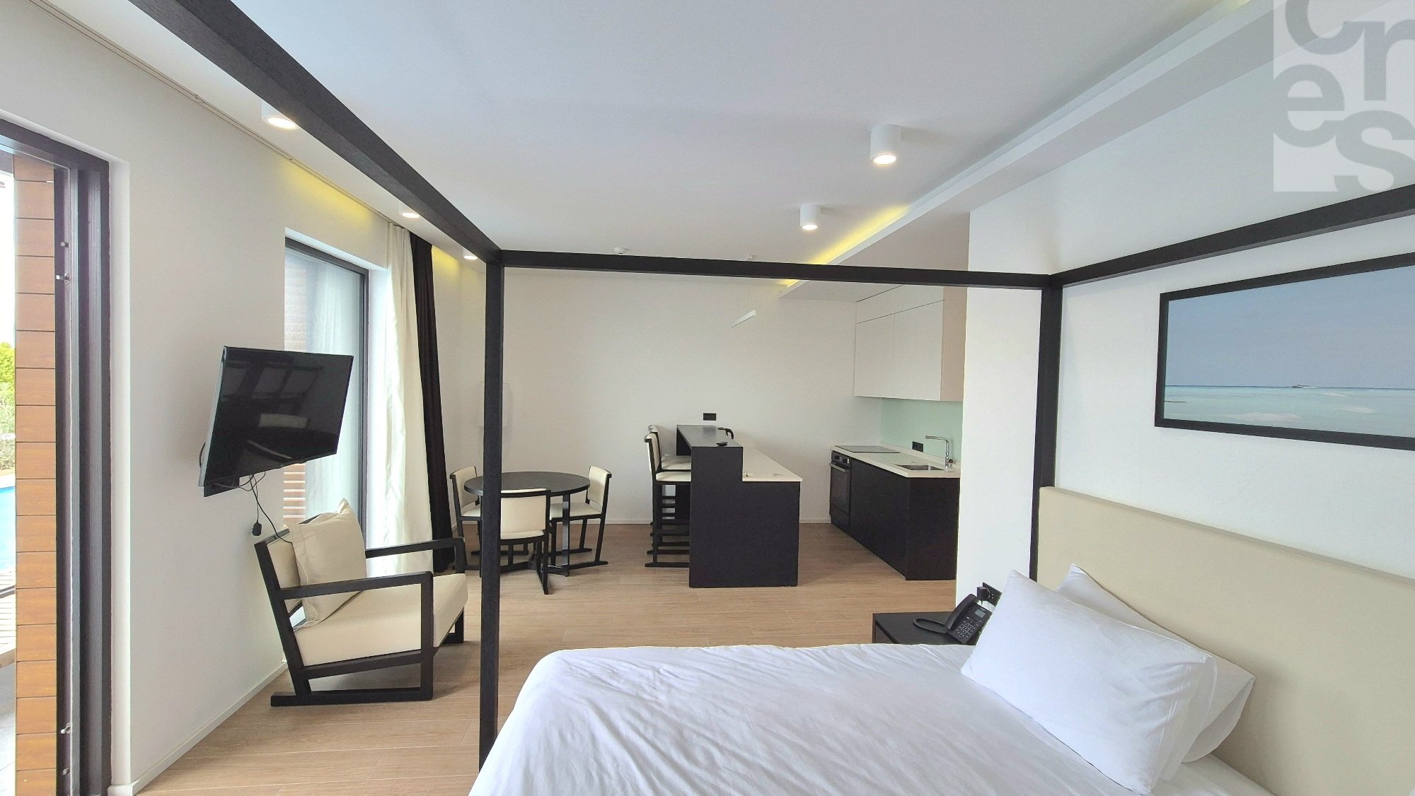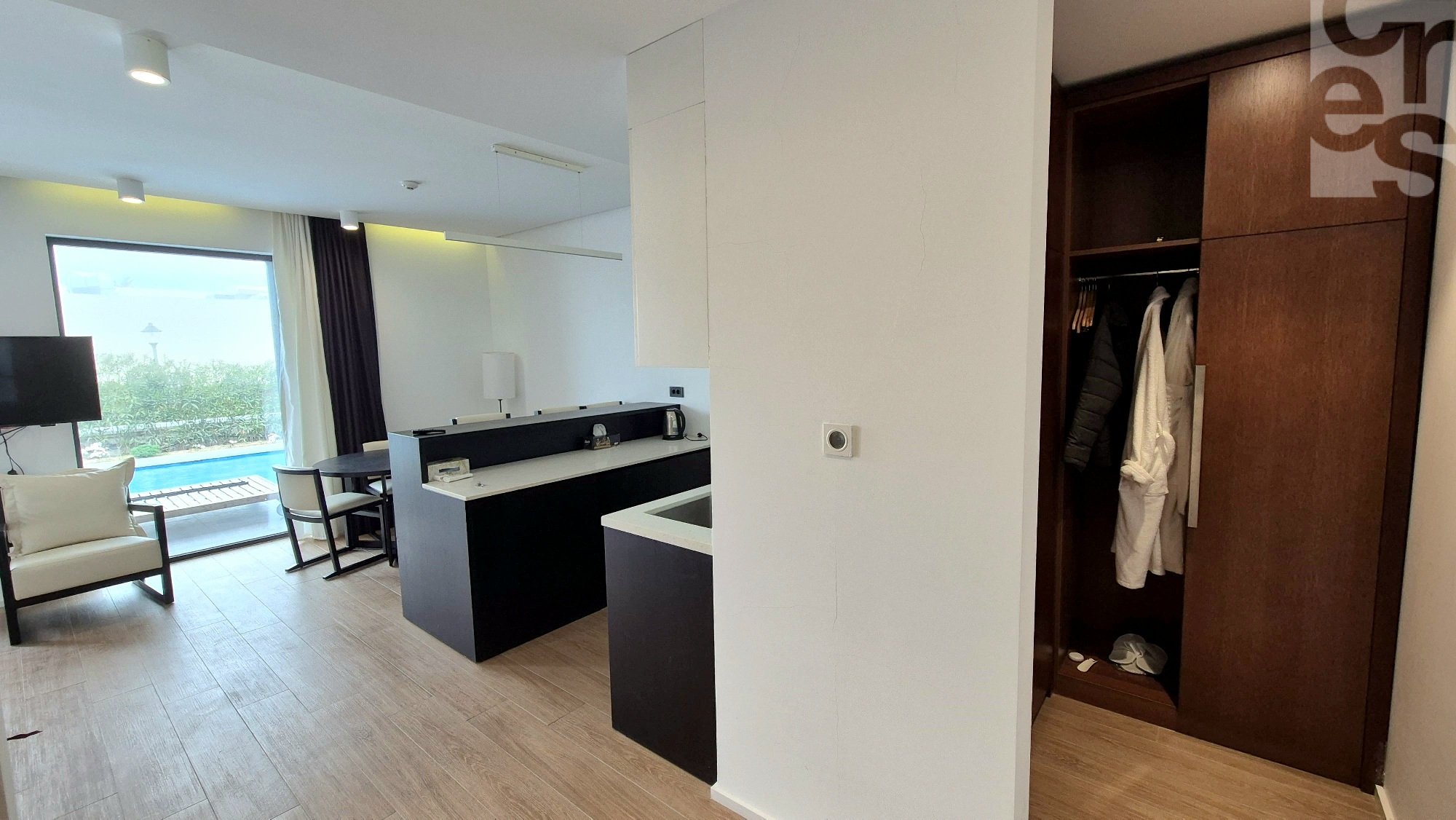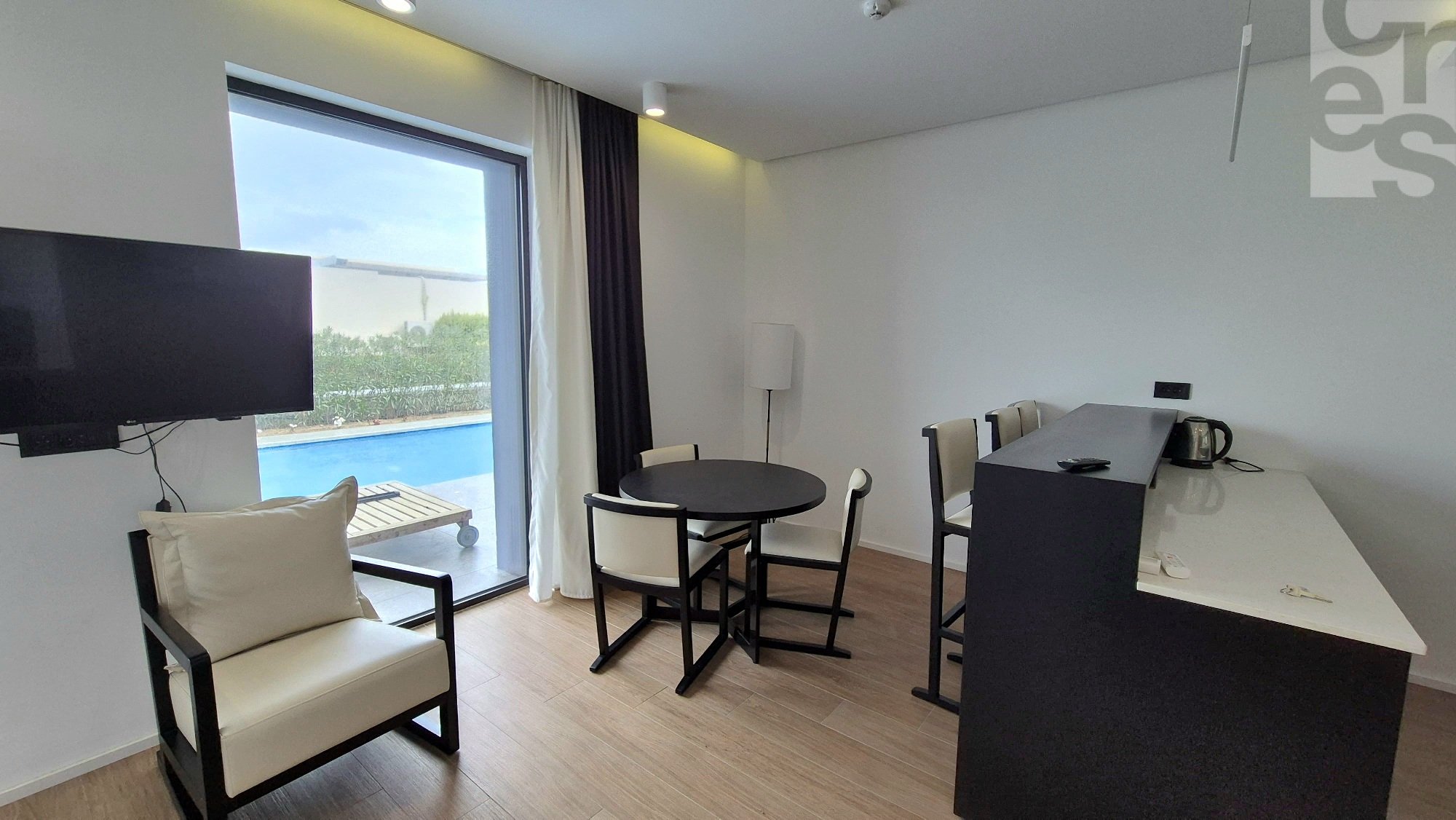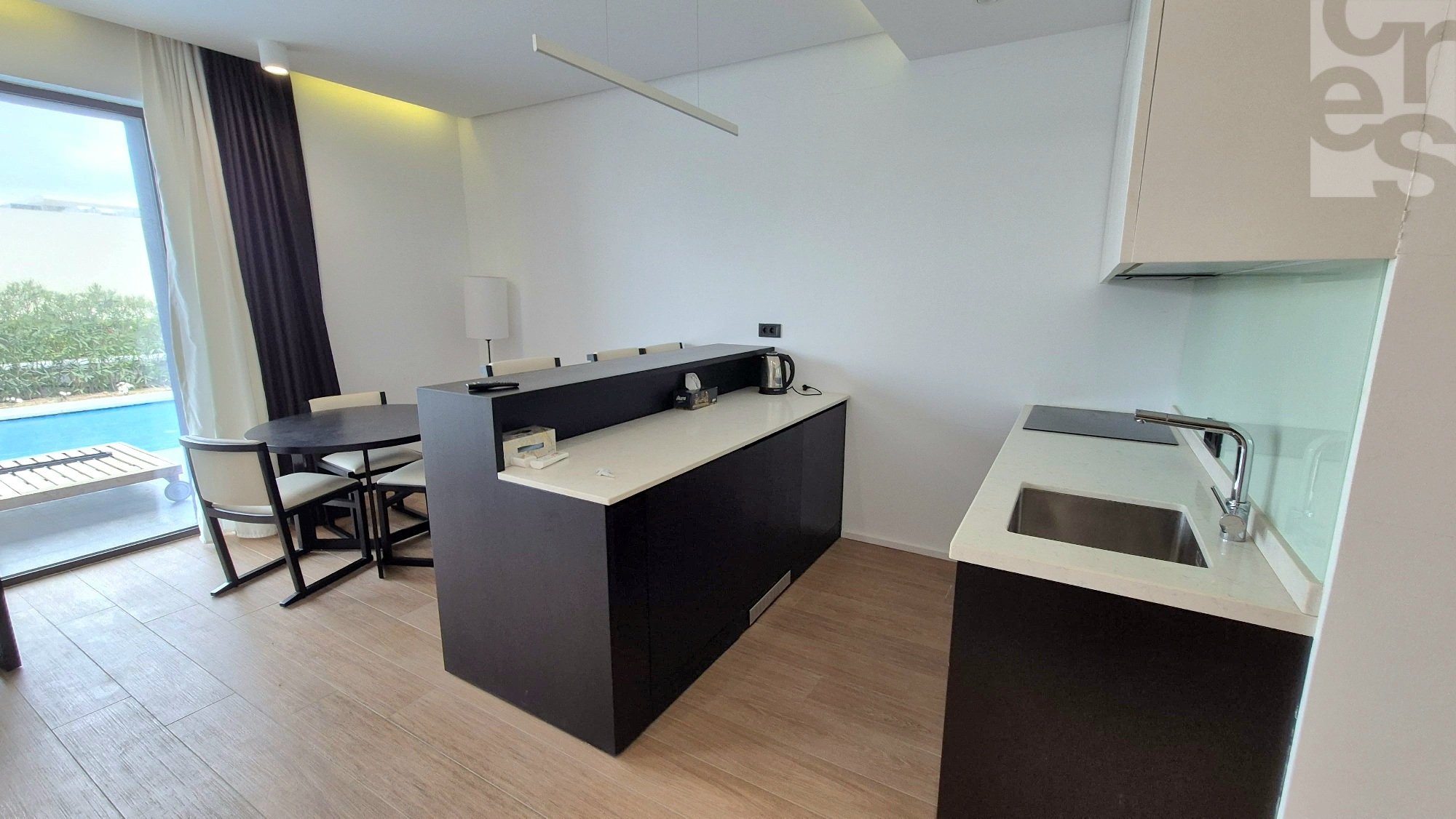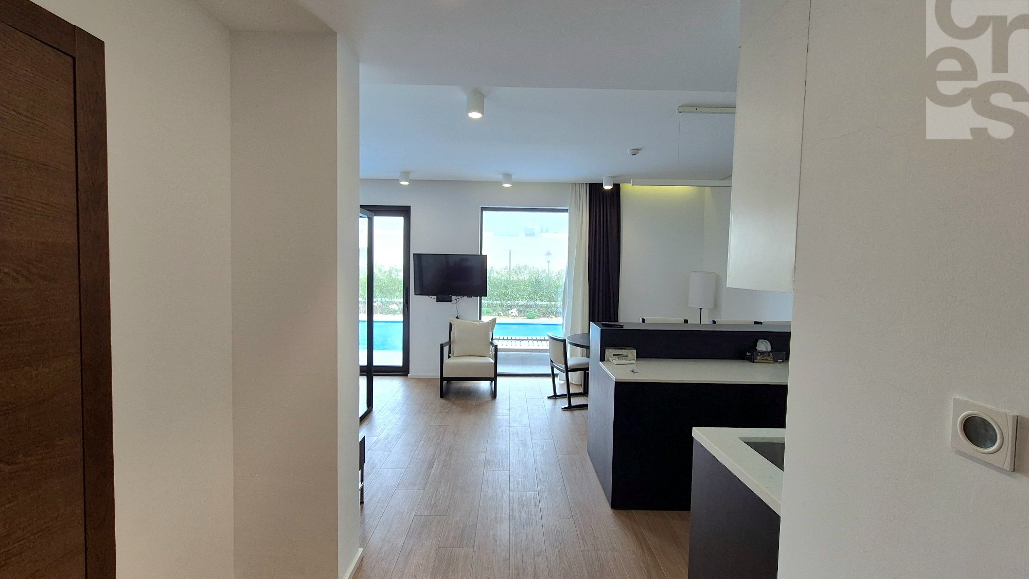 Продается 1 комнатная студио квартира с видом на бассейн в "White Villas I" курортного комплекса Sea Breeze. Квартира расположена на первой линии от моря, площадь 71 м2. Квартира c современным ремонтом и мебелью.